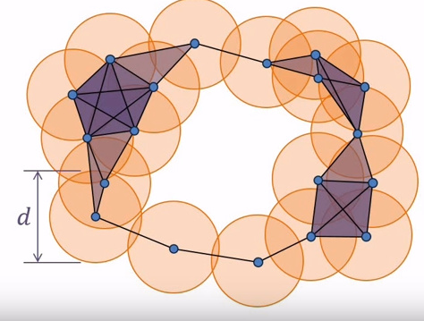 I want to create a circle around each of my data points which would increase in radius and then join with the other data points with which its circle intersected, like this: