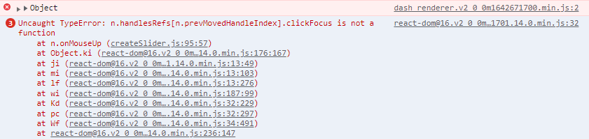 I am finding a crash when including a daq.Slider in a children of a callback, i am getting an unresponsive element with the following error: