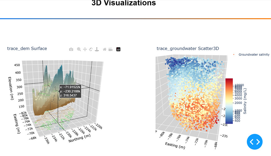 Built a 3D groundwater salinity dashboard in Dash using Plotly to visualize Total Dissolved Solids (TDS) across rock layers at the San Ardo Oil Field.