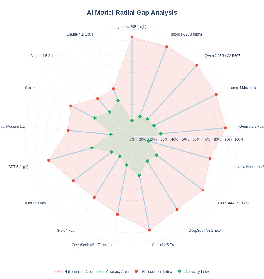 {"Model": "gpt-oss-20B (high)", "Accuracy": 15, "Hallucination": 93, "Type": "Open Weights", "Owner": "OpenAI", "BestFor": "Edge Computing", "Pros": "Tiny Footprint", "Cons": "High Error Rate"},