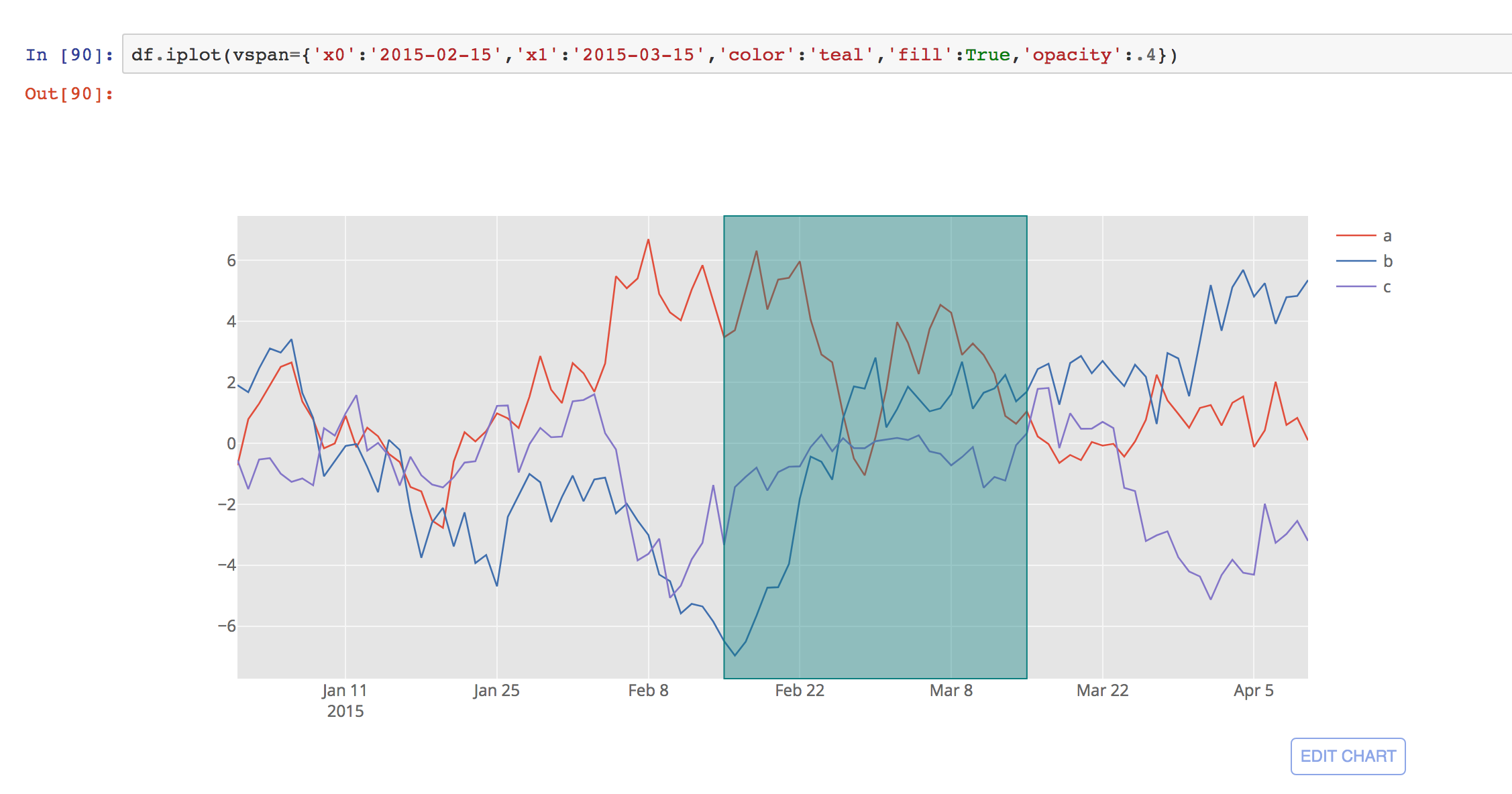 If youβre using Pandas, cufflinks has some shortcuts for exactly this (also using shapes):