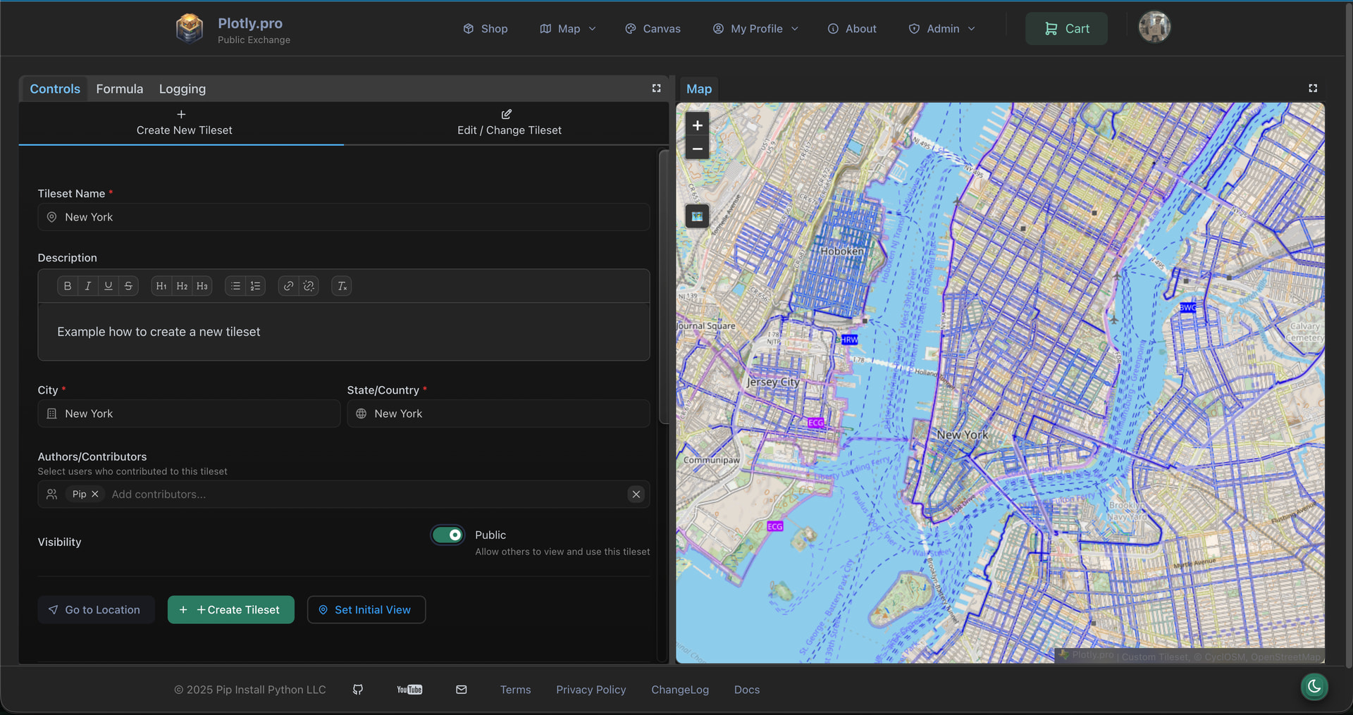 Fill out the information Tileset Name * , Description, City *, State/Country and Authors/Contributors set a visibility of public or private.