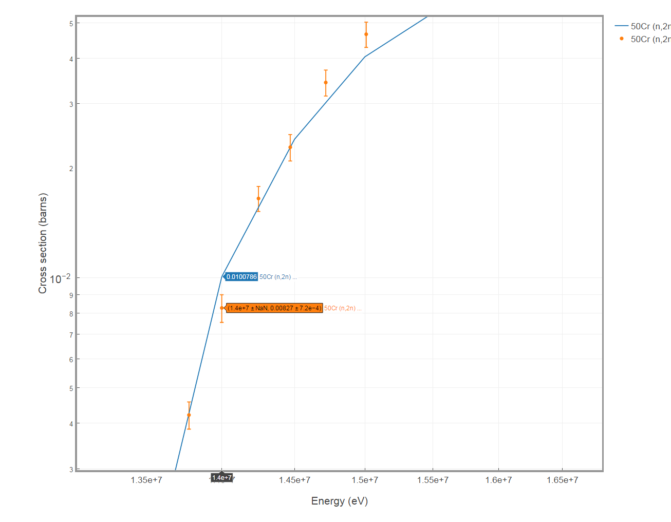 Energy (eV), Cross section (barns), error in energy, error in cross section