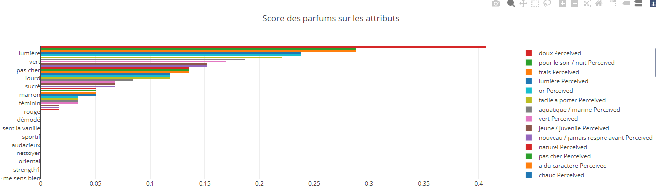 layout=go.Layout(title='Score des parfums sur les attributs',