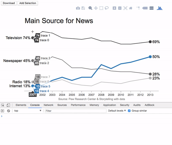 - The data used in the plot came from a random example I found through the plot.ly community